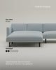 Sur cette page de produit, tu trouveras certainement un commutateur „Dimensions & instructions". Là, tu trouveras les mesures et d'autres détails sur ton canapé.