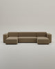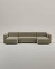 Harvey is equipped with washable and replaceable covers. This applies to the sofa covers made of corduroy, bouclé, linea, and fuego. Simply remove the cover from the respective element and put it in the washing machine. Done, and the cover looks like new! If necessary, you can also reorder new covers in other colors or fabrics.
