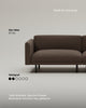 Sur cette page de produit, tu trouveras certainement un commutateur „Dimensions & instructions". Là, tu trouveras les mesures et d'autres détails sur ton canapé.